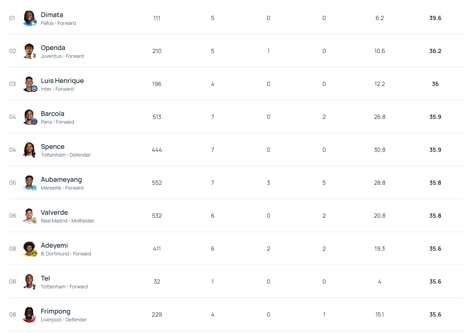 39.6km/h,帕福斯前锋迪马塔断层领先欧冠冲刺速度排行榜